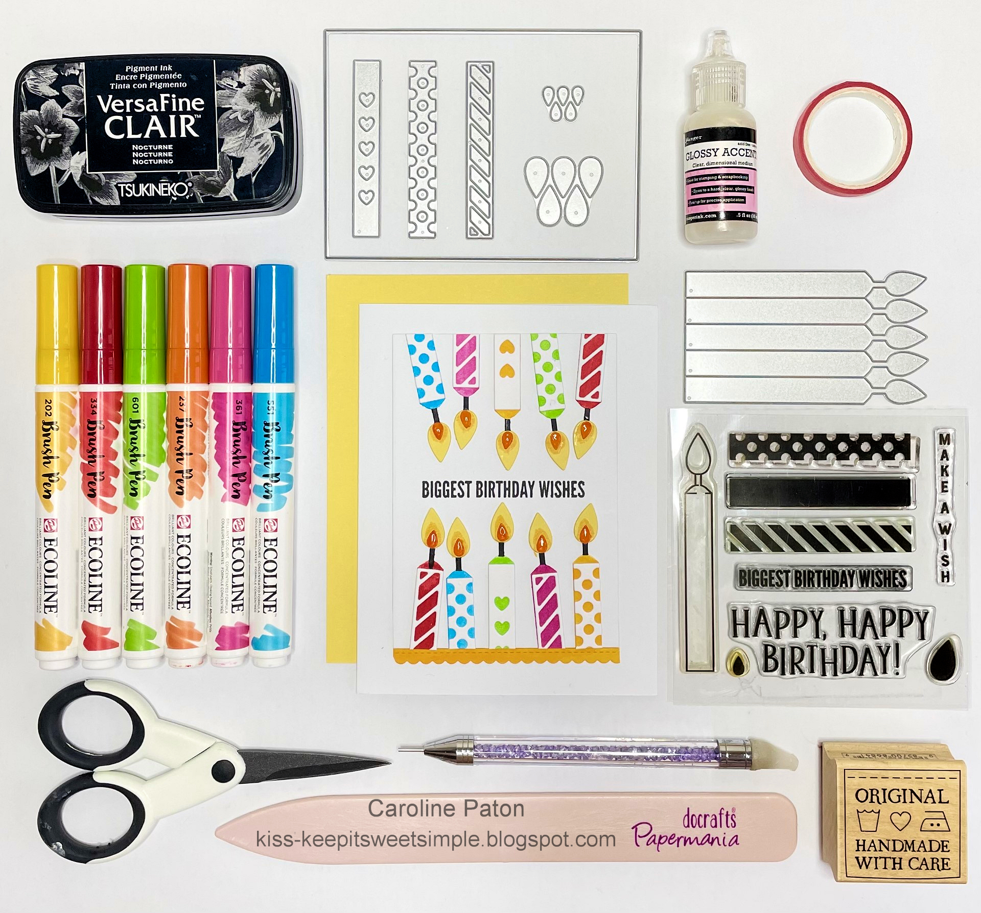 The candles are all die-cuts, stuck together (I used some 'stick it' sheets to make this easier) and then adhered to a card panel, where I had already stamped the centre sentiment.  I just snipped off the excess bit of candle.